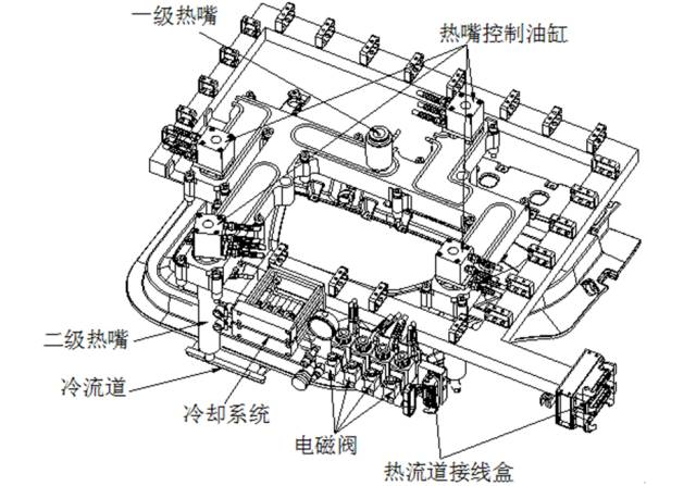 順序閥熱流道控制技術(SVG技術)是一種新型級式控制的熱流道技術,通過油缸控制按順序進膠,解決了傳統多點同步進膠的產品出現外觀缺陷的難題。可有效避免汽車內外飾件出現熔接痕,氣穴等缺陷,減少流長,降低成型壓力,在外觀要求嚴格的汽車內外飾件上發揮了巨大的作用。